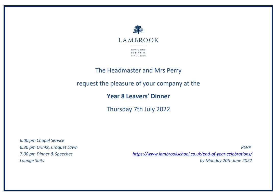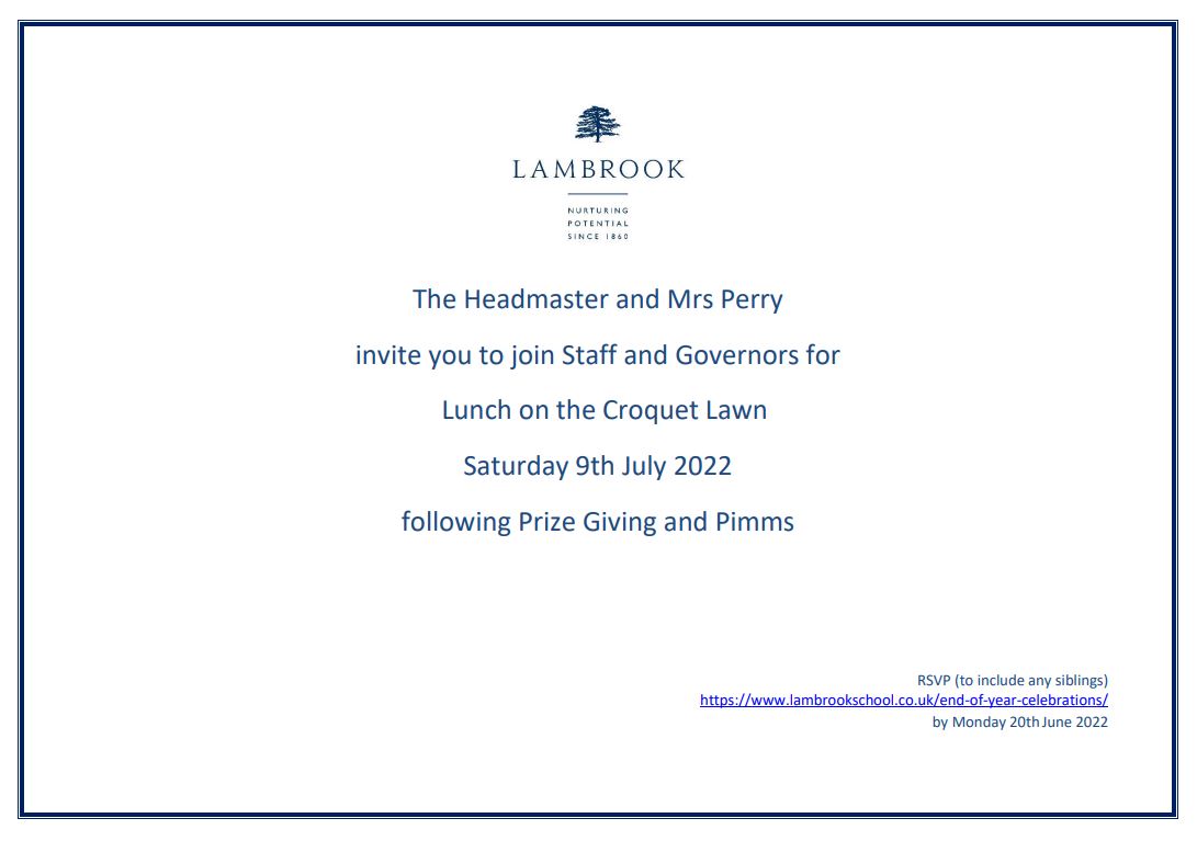 We look forward to welcoming you to these events, but in the meantime, should you have any questions, please email headmaster@lambrookschool.co.uk.