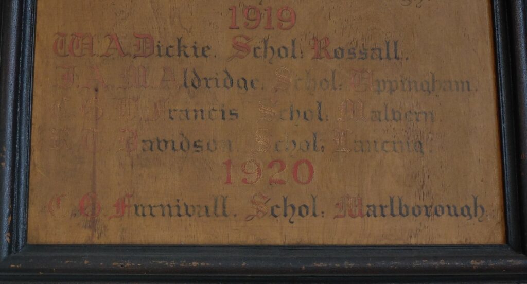 Alongside this artistic accolade were several sporting achievements, ranging from 1st XI Football, an unbeaten season in the 2nd XI Cricket team, top score in the Shooting Competition and a place on the ‘Gym Six’ board for two consecutive years. In the 1919 Peace Day Sports, John won both the Long Jump and Form Race prizes, also being runner-up in the open Obstacle Race. Other triumphs included leading his Troop of ‘Owls’ to victory in Lambrook’s first ever Scout Competition, becoming Dormitory Captain of ‘Fleur de Lys’ and being awarded a fine Academic Scholarship to Uppingham School, but the tribute that perhaps brought John the most pleasure came from his own schoolfellows in their ‘Lambrook Alphabet’: